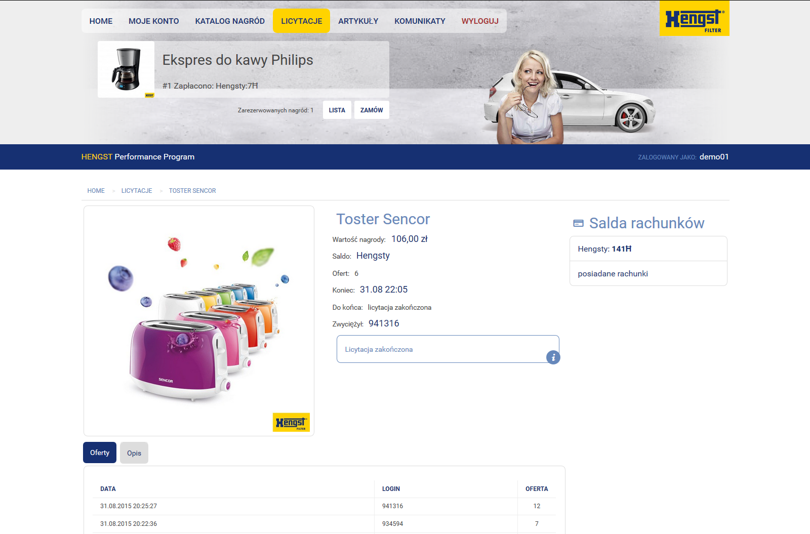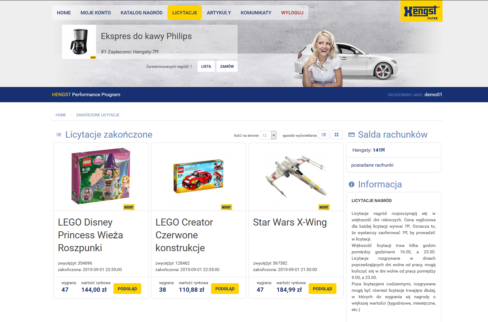 Jeszcze jedno wdrożenie w branży automotive. Do wsparcia sprzedaży platforma wykorzystywała dynamiczny katalog nagród aktualizowany co tydzień, konkursy i quizy.