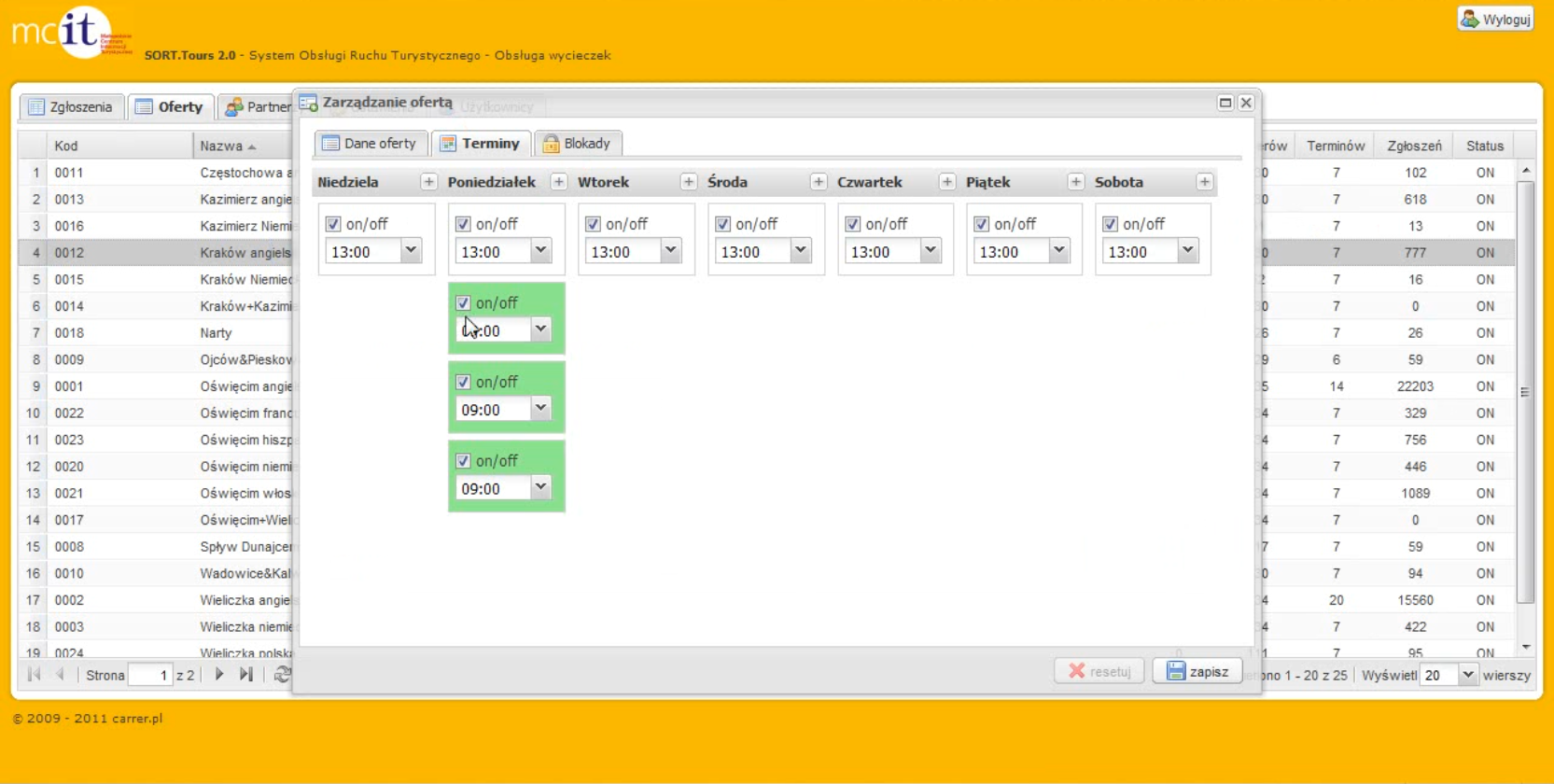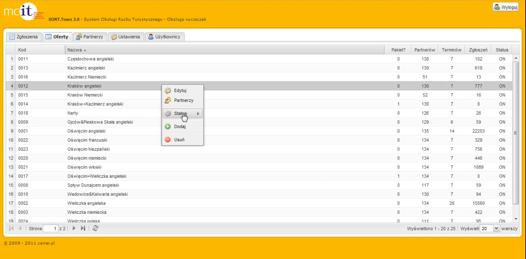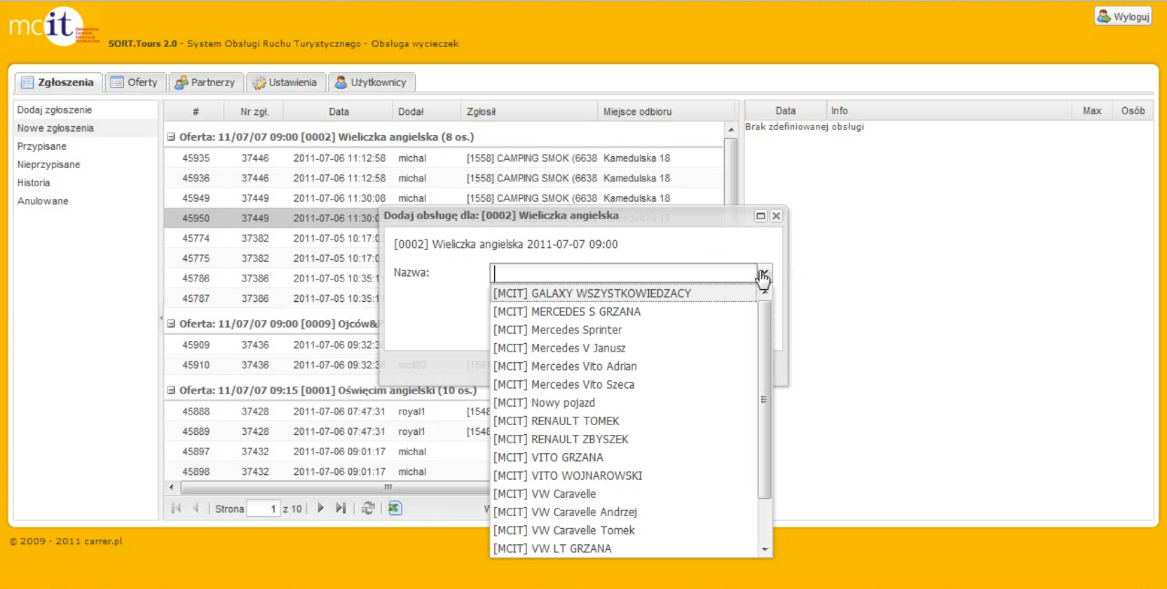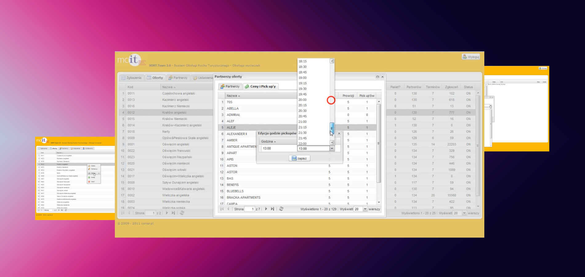 SORT - to platforma, która powstała na indywidualne zamówienie krakowskiego biura turystycznego MCIT. Jej zadaniem bła koordynacja bazy noclegowej i transportowej z którymi pracowało biuro by płynnie zarządzać odbiorem gości z hotelu na wycieczki organizowane przez MCIT. Łącznie w systemie zarejestrowano ponad 140 hoteli i kilkadziesiąt pojazdów. System bazował na wymianie informacji na żywo poprzez email oraz SMS.